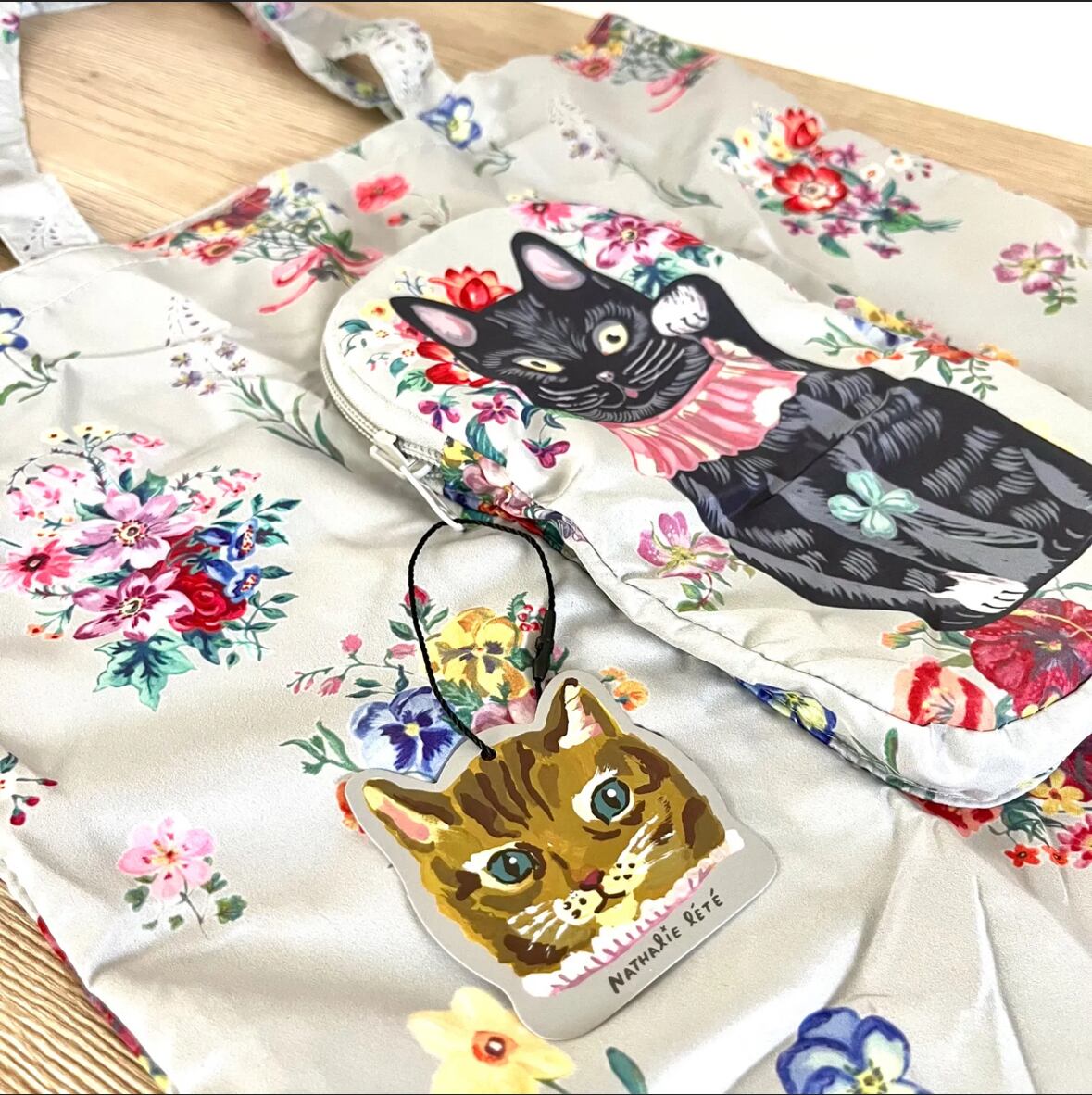 ナタリーレテ フェイスバッグ ラッキーキャット 折りたたみバッグ 黒猫