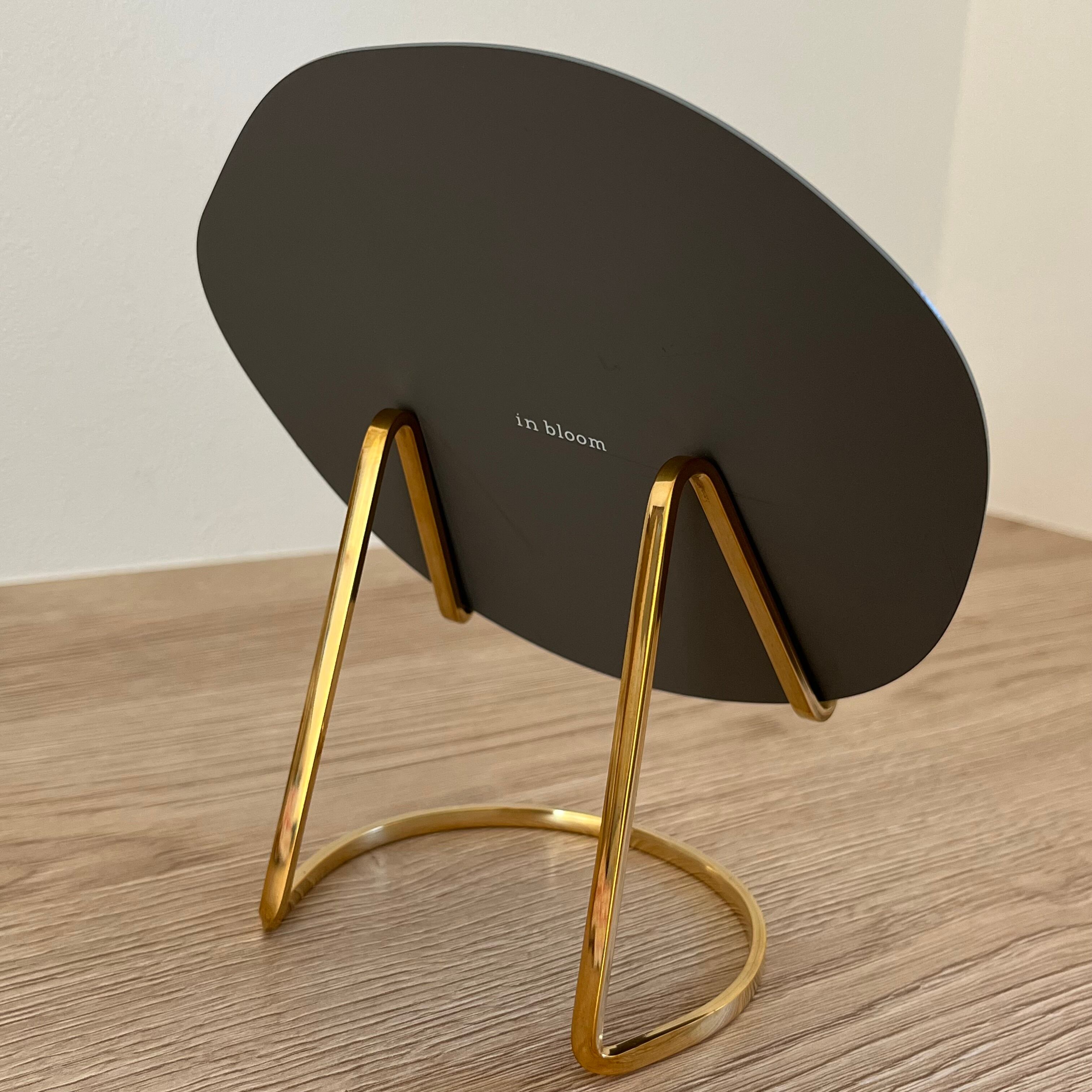 真鍮(ブラス)のスタンドにも「in bloom」の刻印入り。ちょっとした身支度や、インテリアとして楽しめるスタンドミラーです。