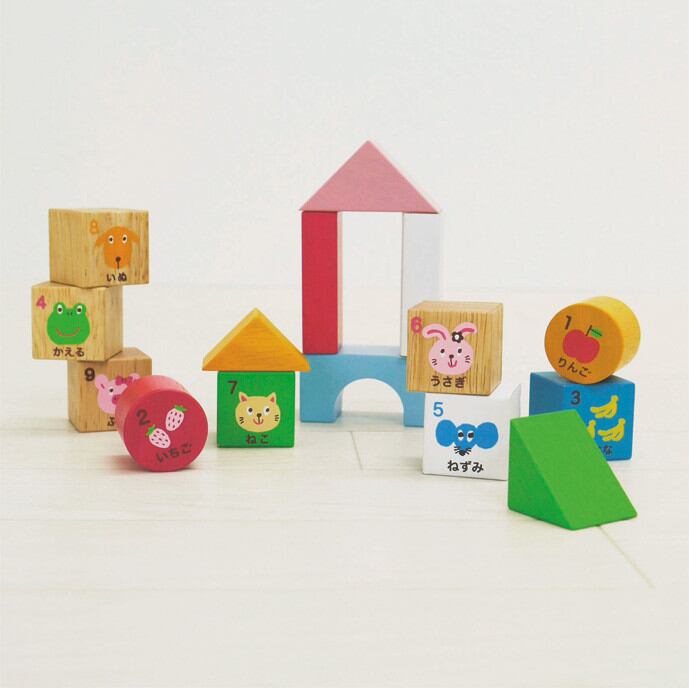 積み重ねたり並べたりすることで、手先の器用さや色彩感覚を養うお手伝いをします。 優しい木の質感とナチュラルな色合いは、お部屋のインテリアにもぴったり。